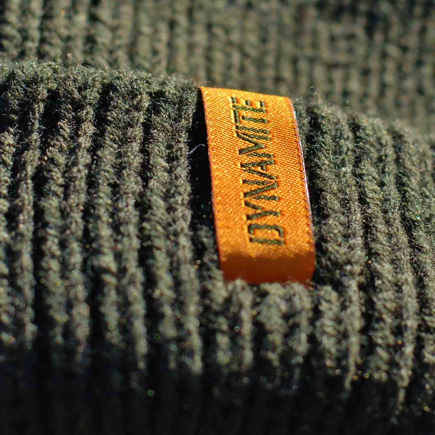 Chunky knit, dark olive, extra warm with turn up. Badge logo on front and orange Dynamite tag on reverse ear.